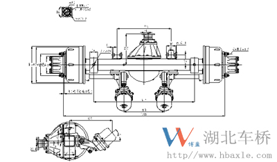 HT30Q09系列前橋總成由工字梁、轉向節總成、“S”凸輪帶滾輪制動器總成、制動鼓及輪轂總成、轉向節臂、橫拉桿總成等組成。HT2W08系列后橋總成由琵琶式鋼板焊接的整體式橋殼,主減速器總成、“S”凸輪帶滾輪制動器總成、制動鼓及輪轂總成、全浮式半軸等件組成。它具有噪音低、運行平穩、安全系數高、制動性能好等優點。