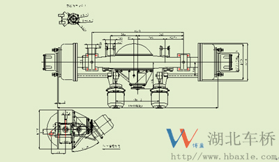 401K75-010-5.286主減速器總成是我廠根據(jù)客車廠家的要求,設(shè)計(jì)突緣端面至橋殼中心線距離為280mm(見如下安裝尺寸圖)。主從動錐齒輪是專門針對客車要求噪音低、壽命長等特點(diǎn)而開發(fā)的,其傳遞扭矩16500N.M,裝配成總成后噪音在84dB以下,壽命可達(dá)70萬次以上,深受用戶的好評。